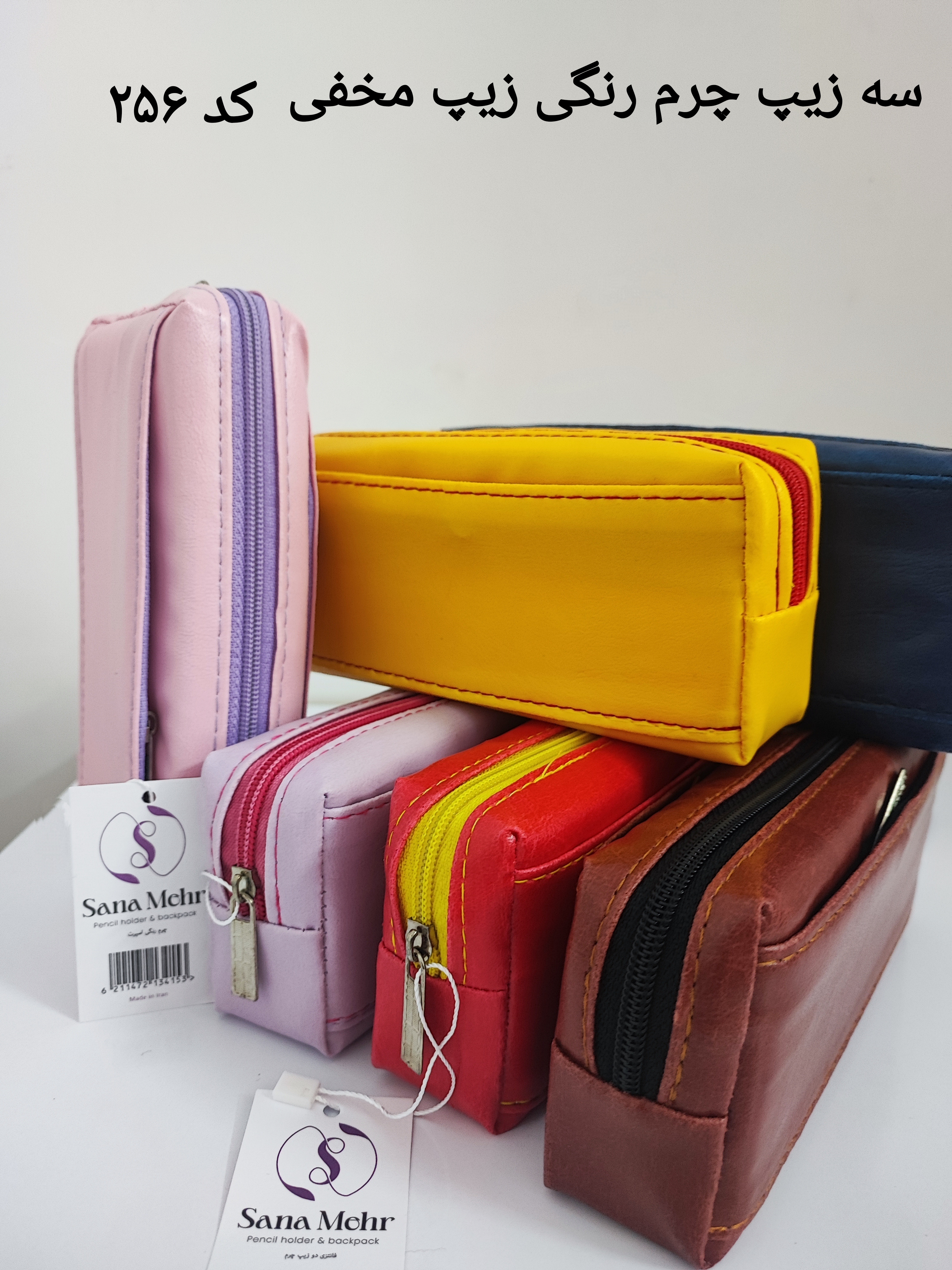 جامدادی سه زیپ چرم رنگی زیپ مخفی