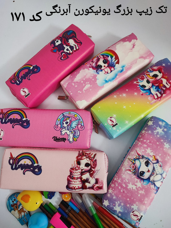 جامدادی تک زیپ بزرگ یونیکورن آبرنگی